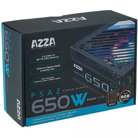 Блок питания Azza PSAZ-650B ATX 650W 80+ bronze (20+4pin) APFC 120mm fan 5xSATA RTL