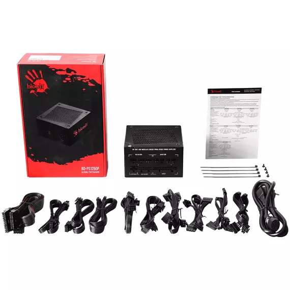 Блок питания Bloody BD-PS1250P ATX 1250W 80+ platinum (20+4pin) APFC 140mm fan 12xSATA Cab Manag RTL [BD-PS1250P-M]