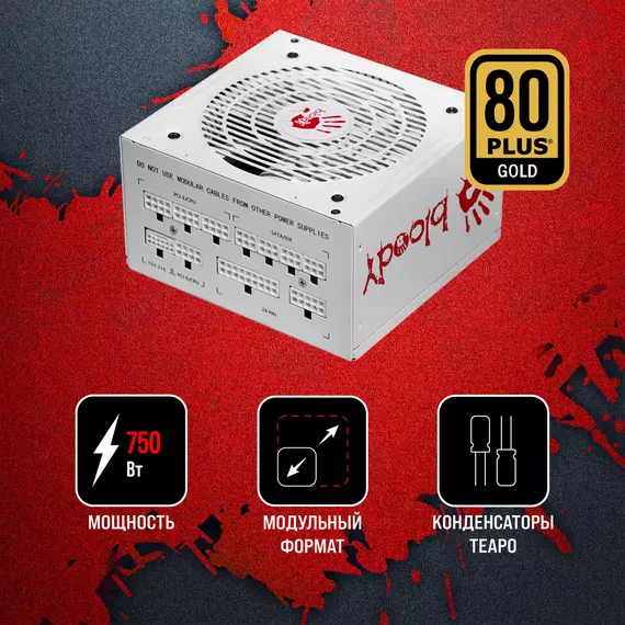 Блок питания Bloody BD-PS750G-MW ATX 750W 80+ gold (20+4pin) APFC 120mm fan 6xSATA Cab Manag RTL