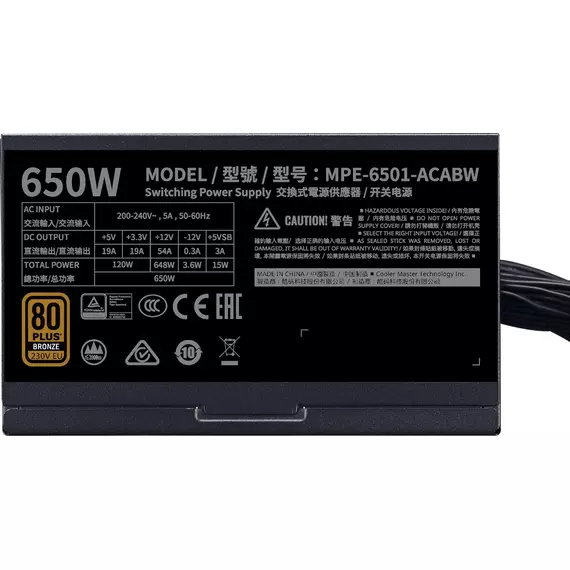 Описание Cooler Master MWE Bronze V3 Gen.5 [MPE-6501-ACAAW-3BEU]