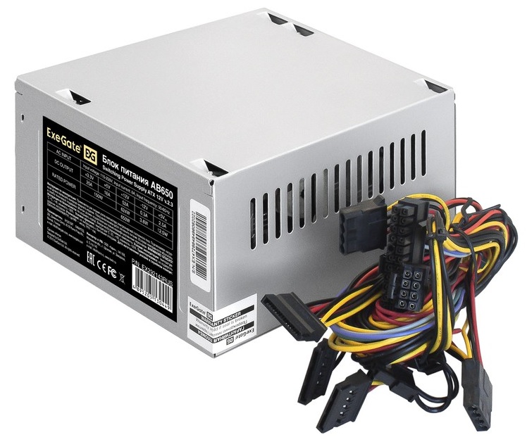 Блок питания Exegate AB650 8cm fan, 24pin, 4pin, 3xSATA, 2xIDE, FDD [EX292143RUS]