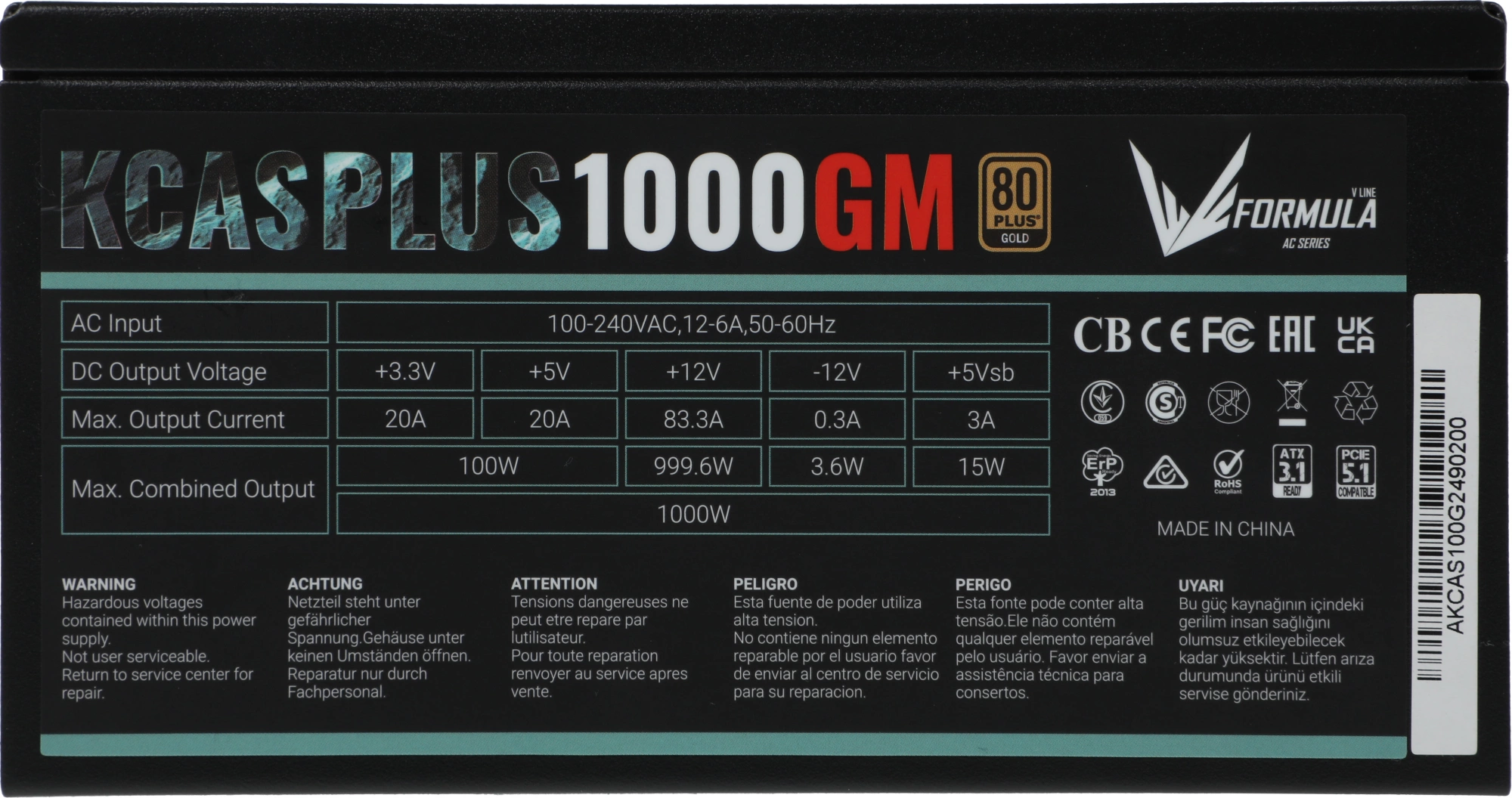 Описание Formula ATX 1000W AC KCAS PLUS 1000GM V2 [ACPG-KPK0FEC.12]