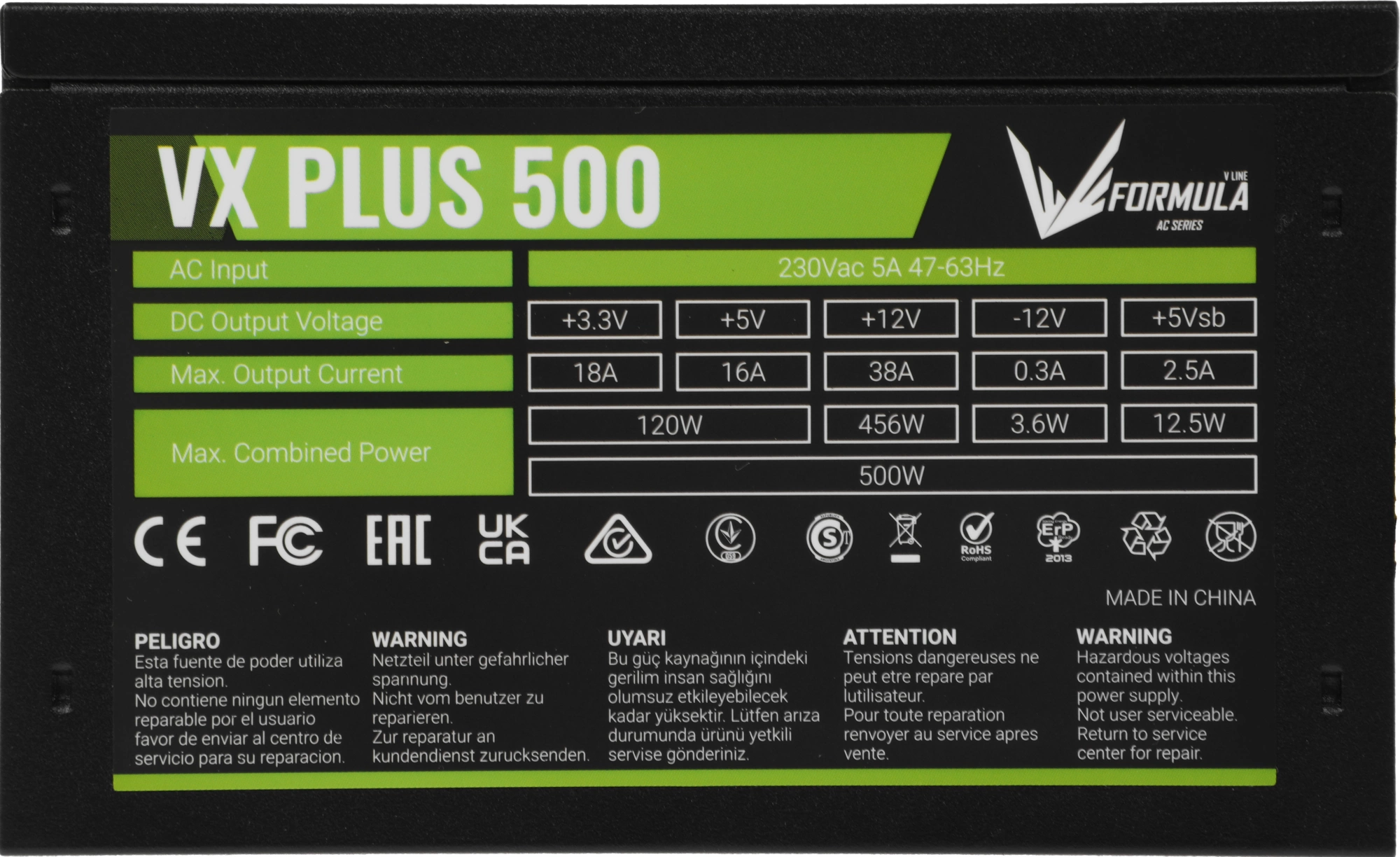 Описание Formula ATX 500W AC VX PLUS [VX PLUS 500W]
