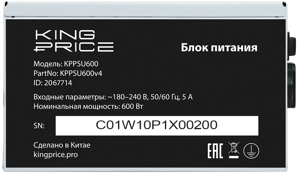 Блок питания KingPrice KPPSU600V4 ATX 600W (20+4pin) 120mm fan 4xSATA