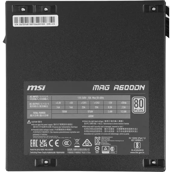 Описание MSI ATX 600W MAG A600DN [306-7ZP6B11-809]