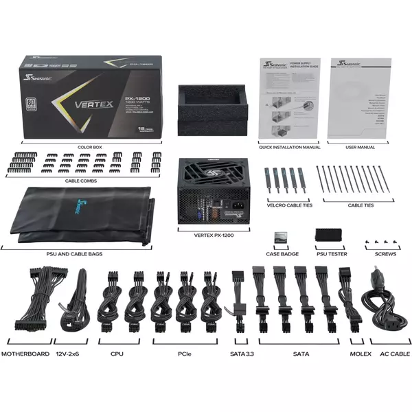 Блок питания Seasonic PX-1200 VERTEX ATX 1200W 80+ platinum (20+4pin) APFC 135mm fan 18xSATA Cab Manag RTL [12122PXAFS]