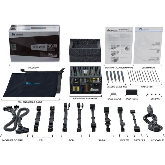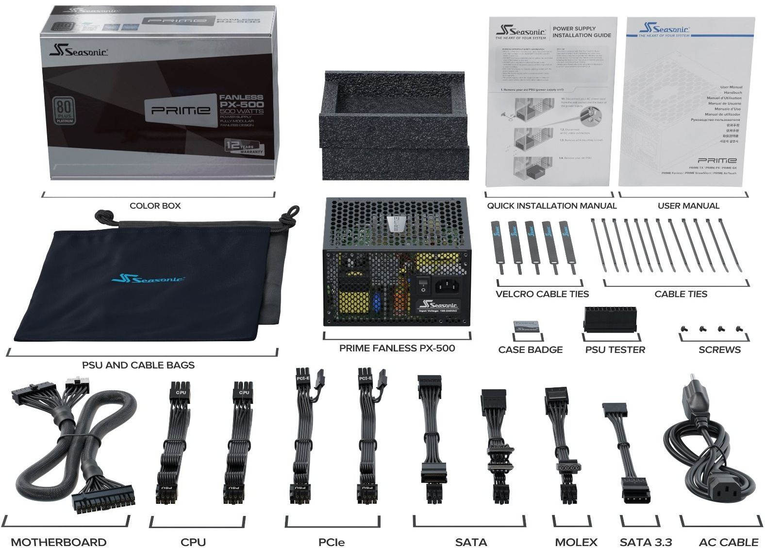 Блок питания Seasonic PX-500 PRIME Fanless ATX 500W PRIME Fanless 80+ platinum 24pin APFC 8xSATA Cab Manag RTL [SSR-500PL]
