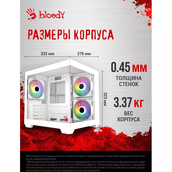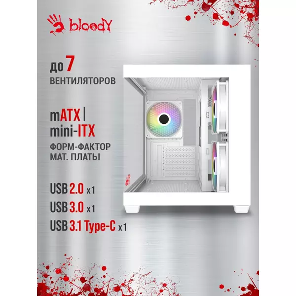 Корпус Bloody CC-121-WH белый без БП mATX 7x120mm 1xUSB2.0 1xUSB3.0 audio