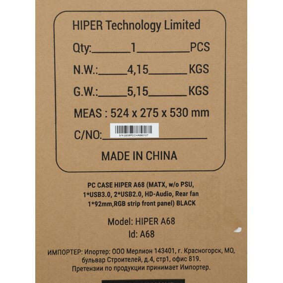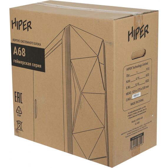 Корпус Hiper A68 черный без БП mATX 1x80mm 1x92mm 2xUSB2.0 1xUSB3.0 audio