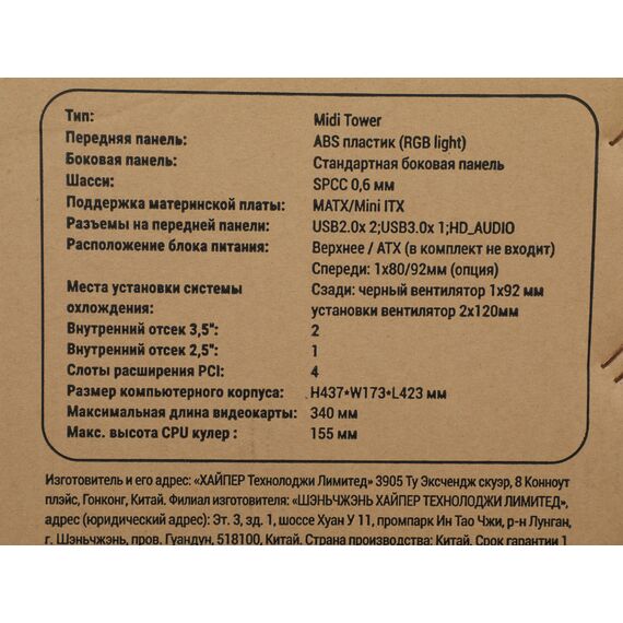 | Форм-фактор совместимых материнских плат | mATX, mini-ITX |