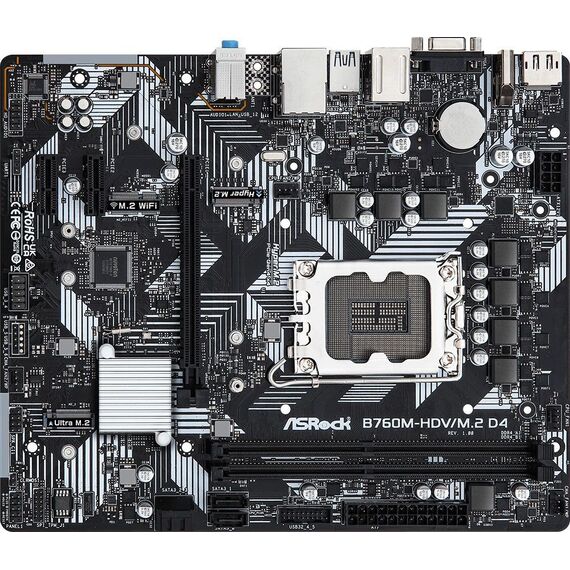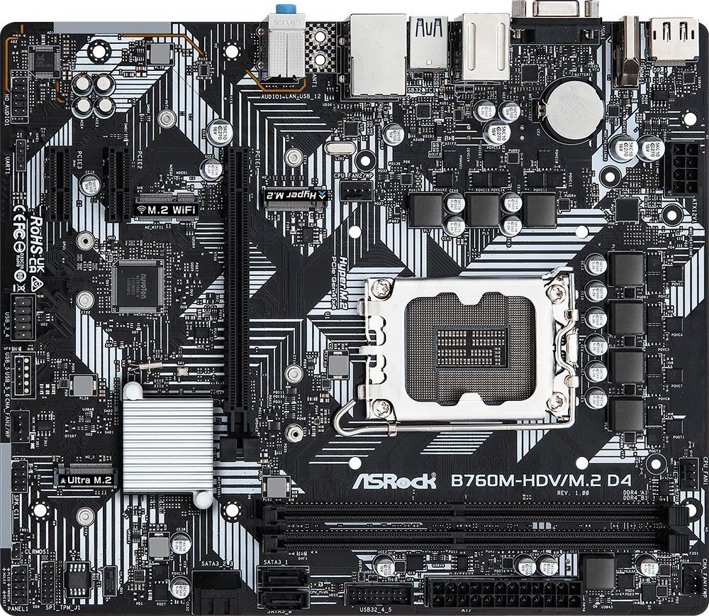 Материнская плата ASRock B760M-HDV/M.2 D4 Soc-1700 Intel B760 2xDDR4 mATX AC97 8ch(7.1) GbLAN RAID+VGA+HDMI+DP