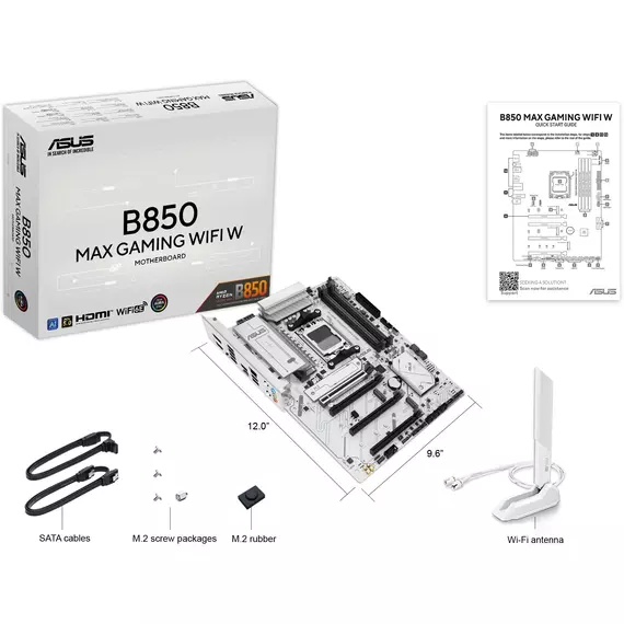 Материнская плата Asus B850 MAX GAMING WIFI W SocketAM5 AMD B850 4xDDR5 ATX AC`97 8ch(7.1) 2.5Gg RAID+HDMI+DP