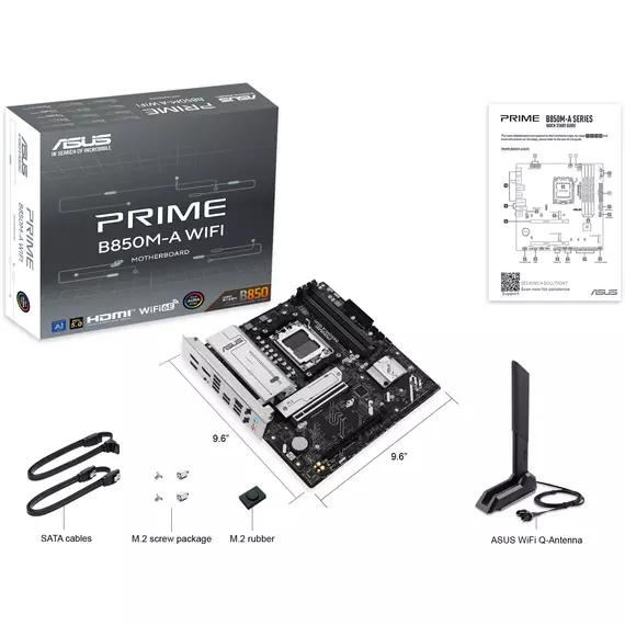 Материнская плата Asus PRIME B850M-A WIFI AM5 AMD B850 4xDDR5 mATX AC97 8ch(7.1) 2.5Gg RAID+VGA+HDMI+DP