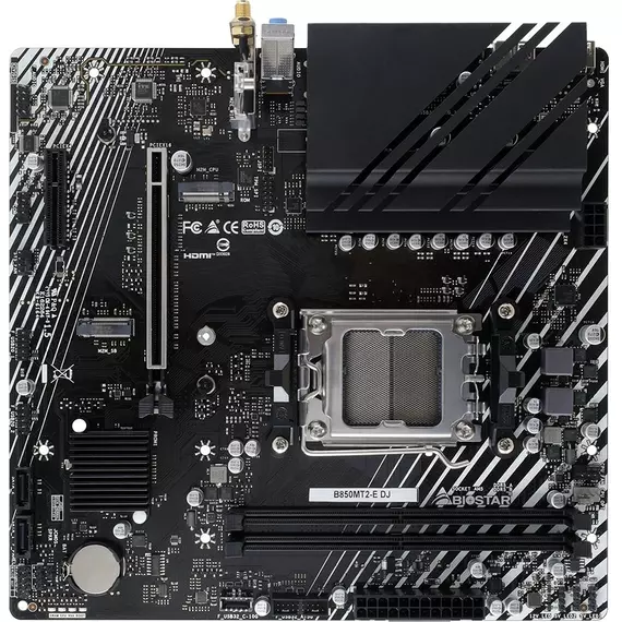 Материнская плата BioStar B850MT2-E DJ SocketAM5 AMD B850 2xDDR5 mATX AC`97 8ch(7.1) 2.5Gg RAID+HDMI+DP