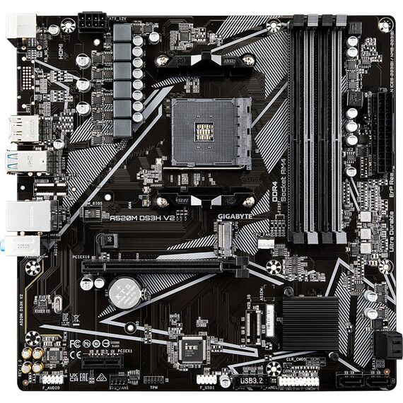 Материнская плата GigaByte A520M DS3H V2 AM4 AMD A520 4xDDR4 mATX AC97 8ch(7.1) GbLAN RAID+HDMI+DP