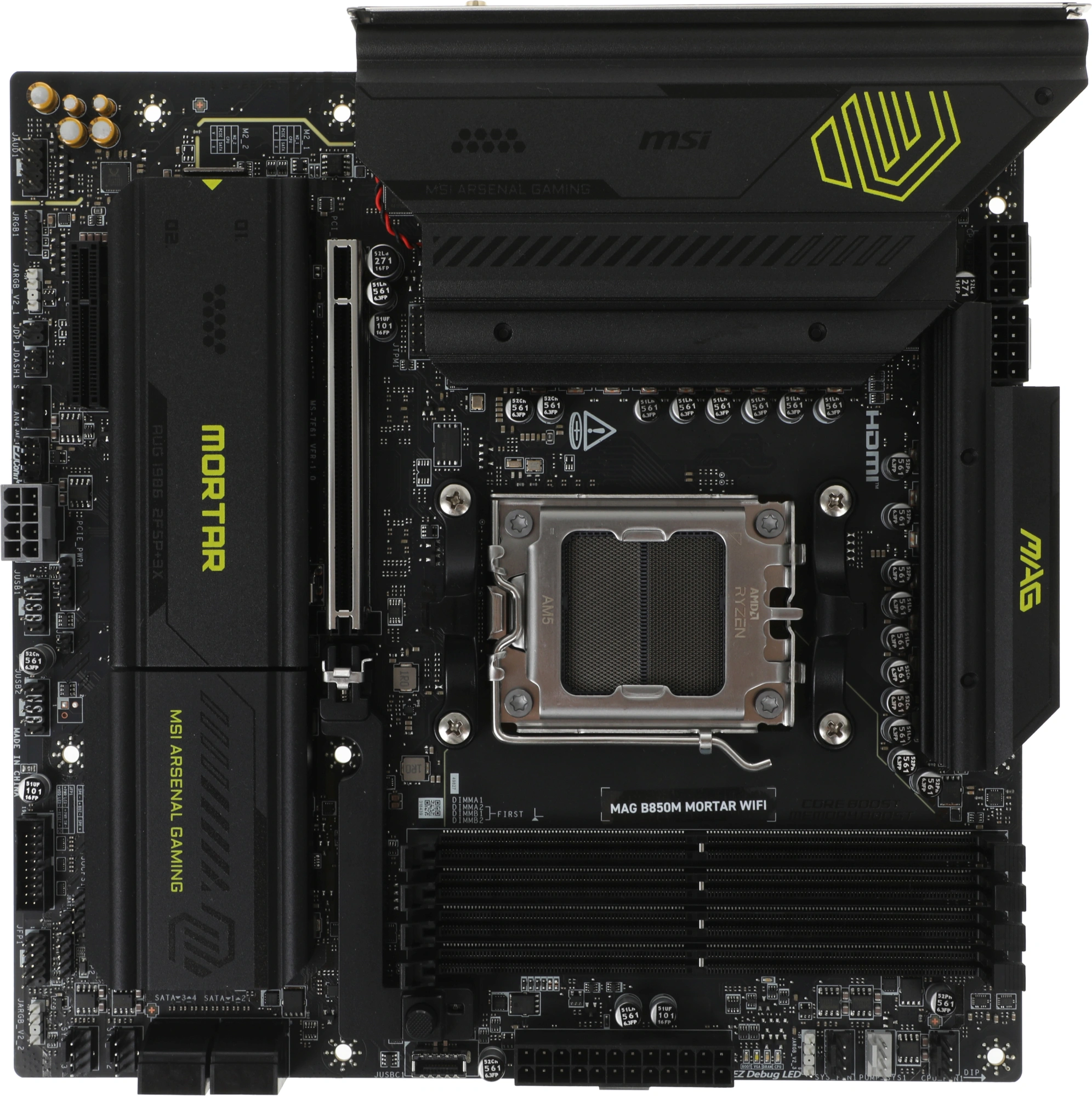 Материнская плата MSI MAG B850M MORTAR WIFI SocketAM5 AMD B850 4xDDR5 mATX AC97 8ch(7.1) 5Gigabit RAID+HDMI