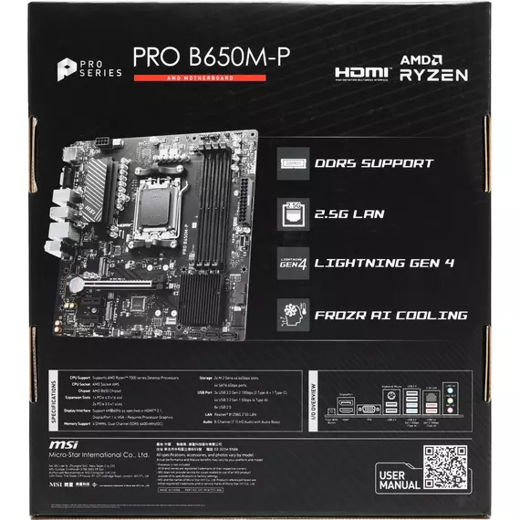 Материнская плата MSI PRO B650M-P SocketAM5 AMD B650 4xDDR5 mATX AC97 8ch(7.1) 2.5Gg RAID+VGA+HDMI+DP