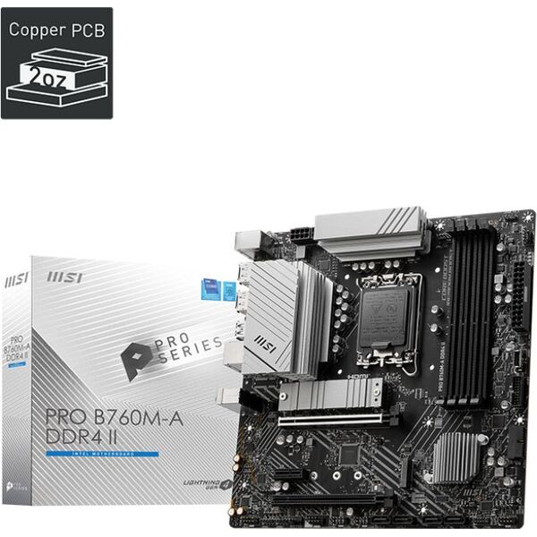 Материнская плата MSI PRO B760M-A DDR4 II Soc-1700 B760 4xDDR4 mATX AC`97 8ch(7.1) 2.5Gg+HDMI+DP