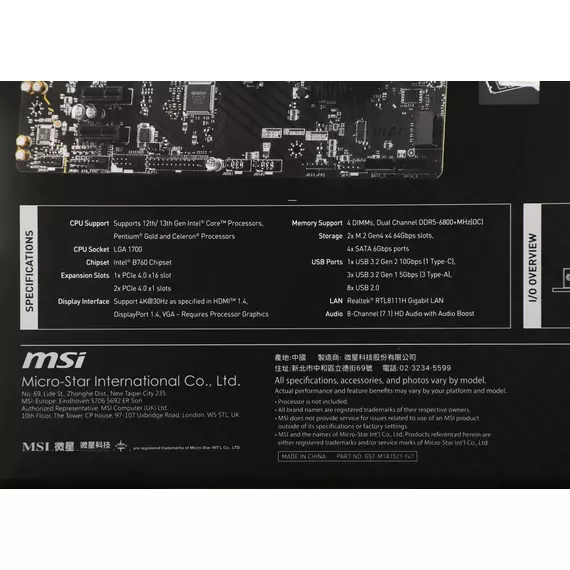 Материнская плата MSI PRO B760M-P LGA1700 Intel B760 4xDDR5 mATX AC97 8ch(7.1) GbLAN+VGA+HDMI+DP