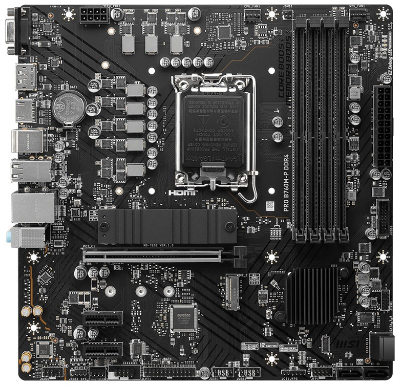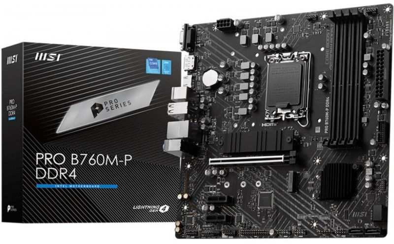 Материнская плата MSI PRO B760M-P DDR4 LGA1700 B760 PCI-E Dsub+HDMI+DP GbLAN SATA MicroATX 4DDR4 RTL