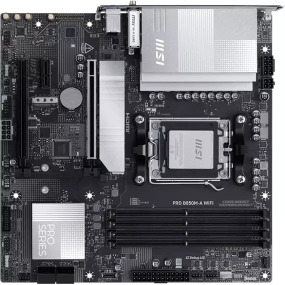 Материнская плата MSI PRO B850M-A WIFI SocketAM5 AMD B850 4xDDR5 mATX AC`97 8ch(7.1) 5Gigabit RAID+HDMI+DP