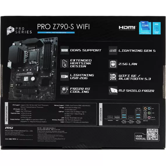 Материнская плата MSI PRO Z790-S WIFI Soc-1700 Intel Z790 4xDDR5 ATX AC97 8ch(7.1) 2.5Gg RAID+HDMI+DP