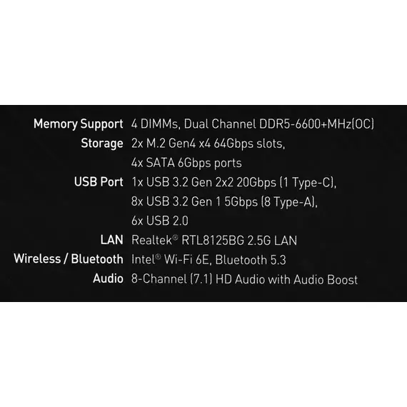 | Поддержка частот оперативной памяти | 6600+(OC)/ 6400(OC)/ 6200(OC)/ 6000(OC)/ 5800(OC)/ 5600(JEDEC)/ 5400(JEDEC)/ 5200(JEDEC)/ 5000(JEDEC)/ 4800 МГц |