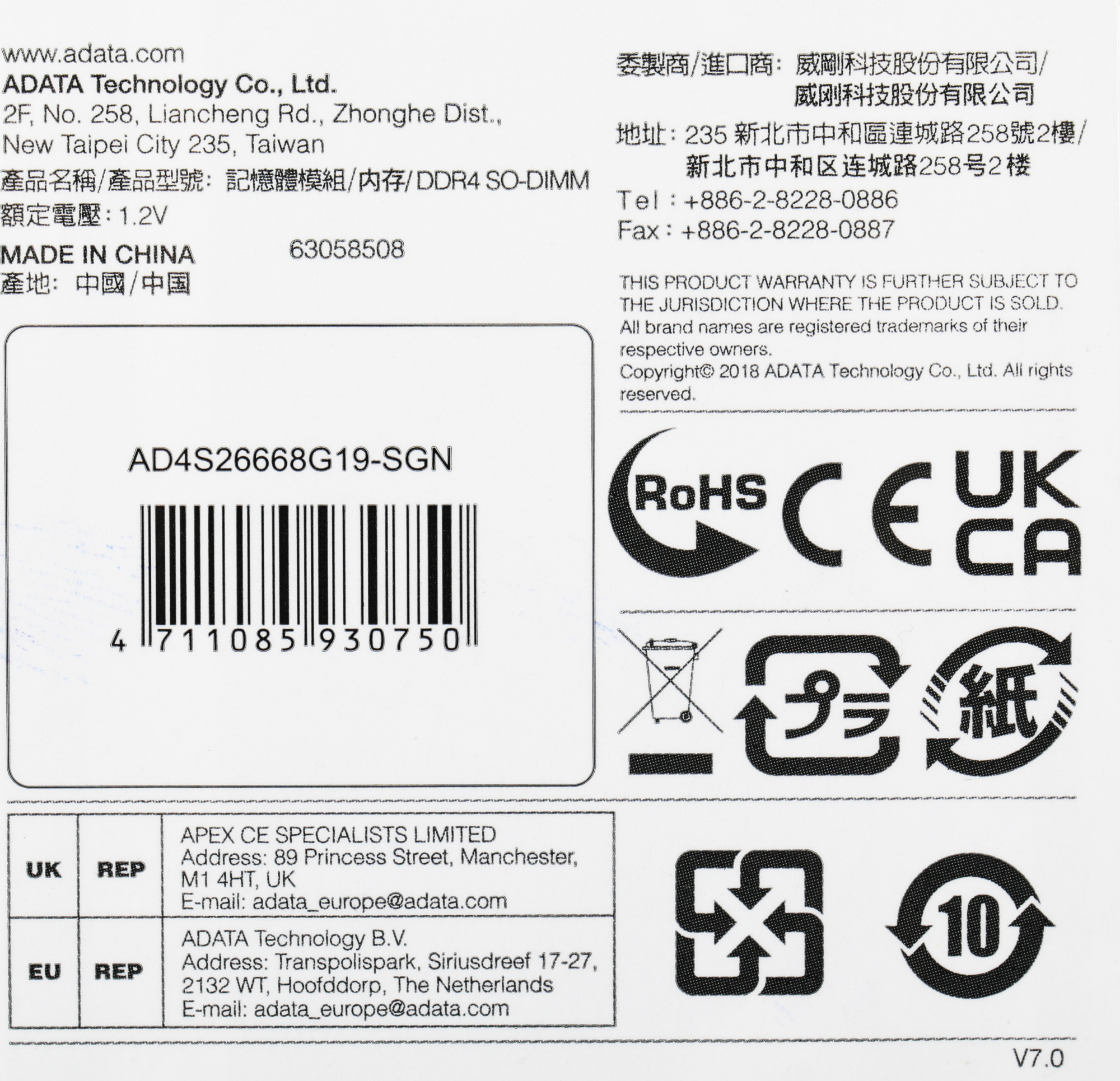 | PartNumber / Артикул Производителя | AD4S26668G19-SGN |