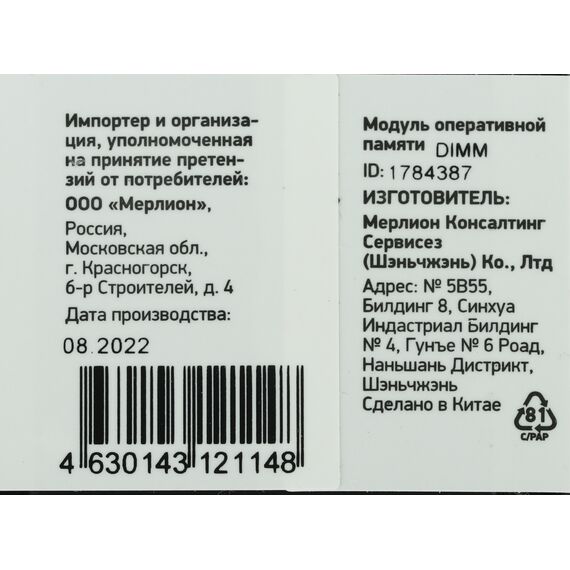 | PartNumber / Артикул Производителя | DGMAD43200008S |
