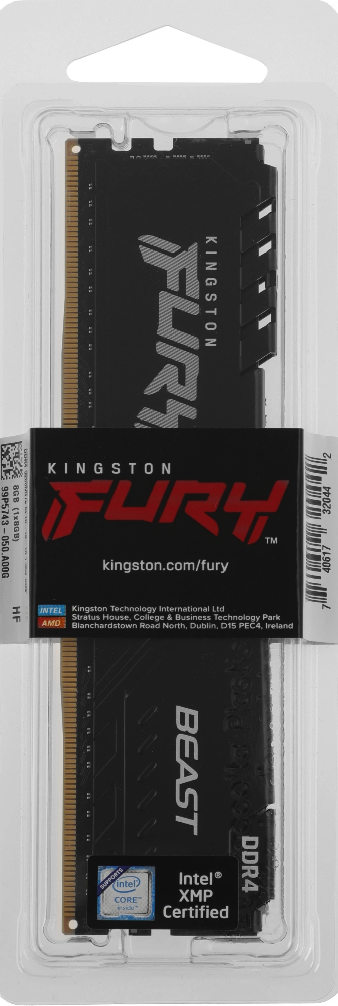 Память Kingston 8GB Fury Beast Gaming DDR4 3200MHz PC4-25600 CL16 DIMM 288-pin 1.35В Intel single rank с радиатором Ret RTL [KF432C16BB/8-SP]
