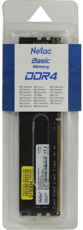Модуль памяти Netac Basic 16Gb DDR4 DIMM [NTBSD4P32SP-16]