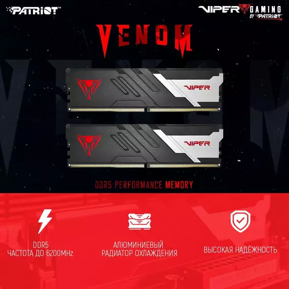 Память Patriot 2x24GB Viper Venom DDR5 6000MHz Gaming PC5-48000 CL30 DIMM 288-pin 1.35В kit с радиатором RTL [PVV548G600C30K]