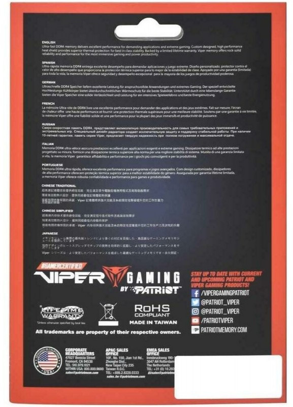 Описание Patriot Viper 32Gb [PVE2432G360C0]