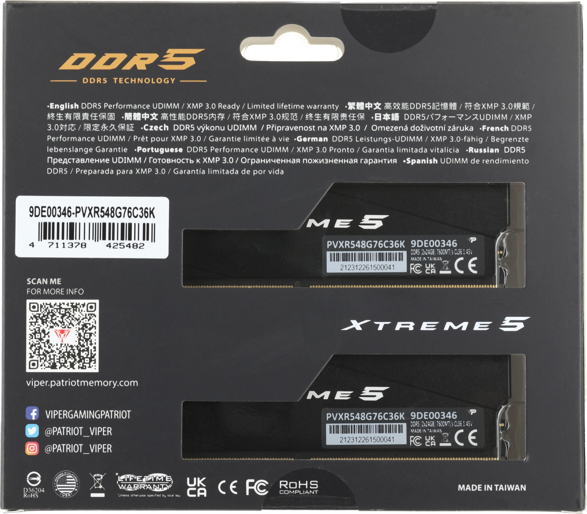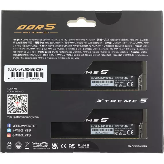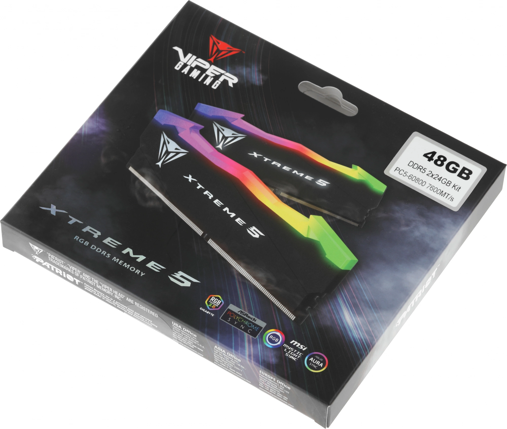 Описание Patriot Viper Xtreme 5 RGB Gaming 48Gb Kit 2x24Gb [PVXR548G76C36K]