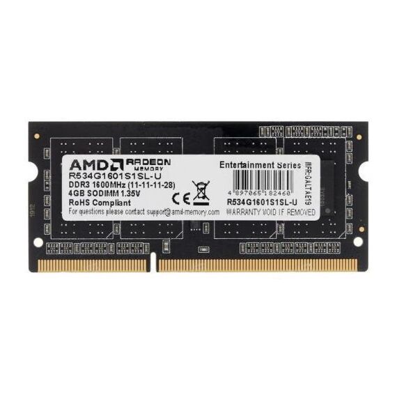 Память AMD 4Gb DDR3 1600MHz R5 PC3-12800 CL11 SO-DIMM 204-pin 1.35В RTL [R534G1601S1SL-U]