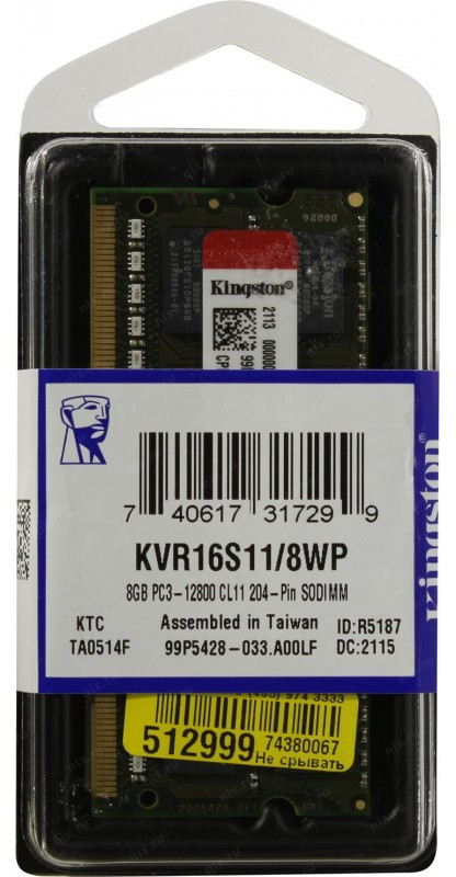 Описание Kingston 8Gb [KVR16S11/8WP]