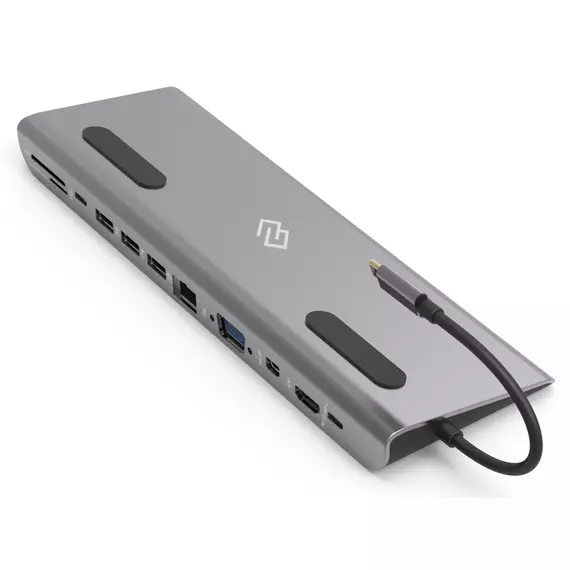 Type-C док-станция DIGMA, 12 портов (HDMI (4K@30HZ, FULL HD@60Hz) , VGA, RJ45, Mini DisplayPort (4K@30HZ, FULL HD@60Hz), 3xUSB 3.0, Audio 3.5mm, 2xUSB-C (2.0 и PD 3.0 60W), MicroSD, SD)