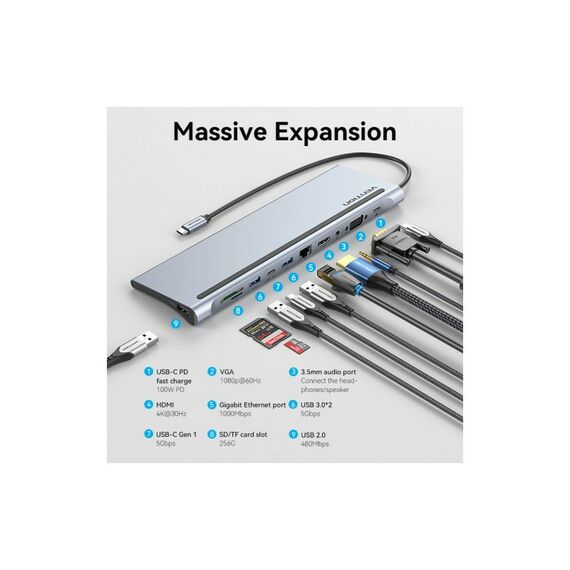 Мультифункциональная док-станция Vention USB Type C 11 в 1