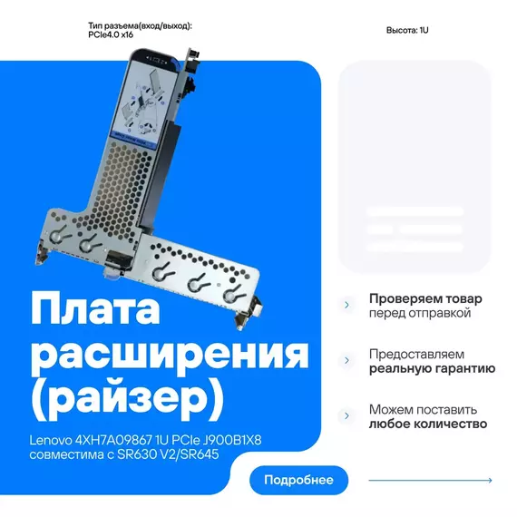 Наличие товара Lenovo ThinkSystem SR630 V2/SR645 x16/x16 PCIe G4 Riser1 LP+FH Option Kit [4XH7A09867]