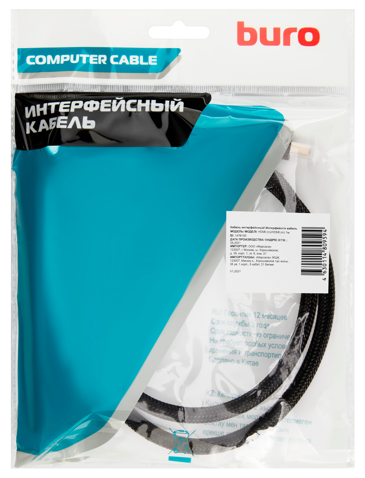 Описание BURO HDMI (m)/HDMI (m) 1м. [HDMI-V1.4-1MC]