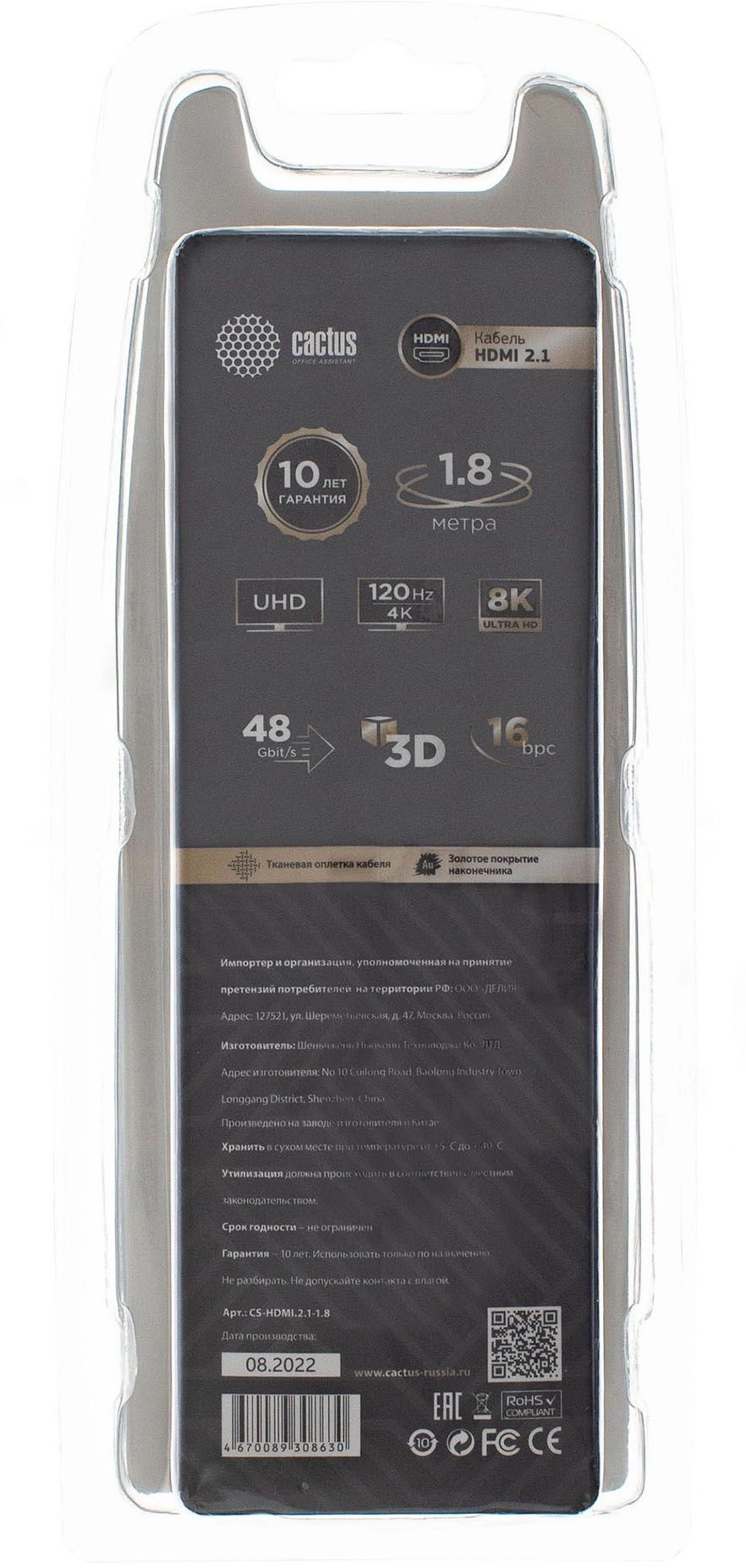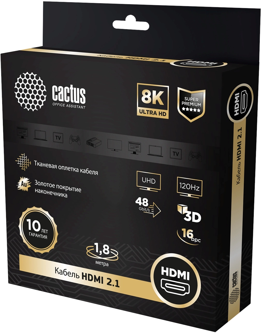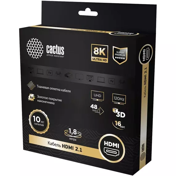 Описание Cactus HDMI (m)/HDMI (m) 1.8м. [CS-HDMI.2.1-1.8]