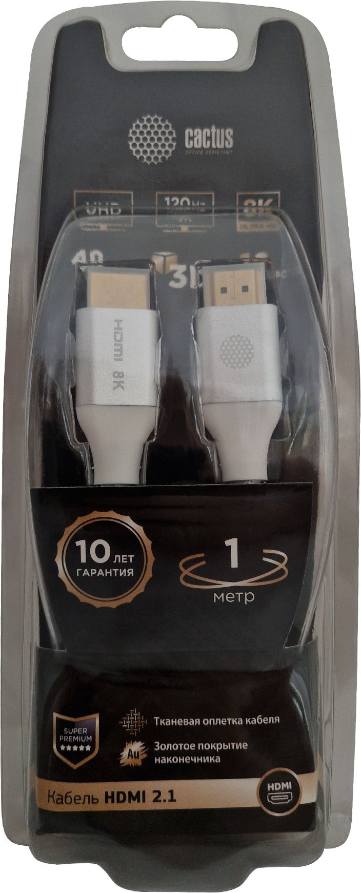 Кабель аудио-видео Cactus HDMI (m)/HDMI (m) 1м. позолоч.конт. серебристый [CS-HDMI.2.1-1]