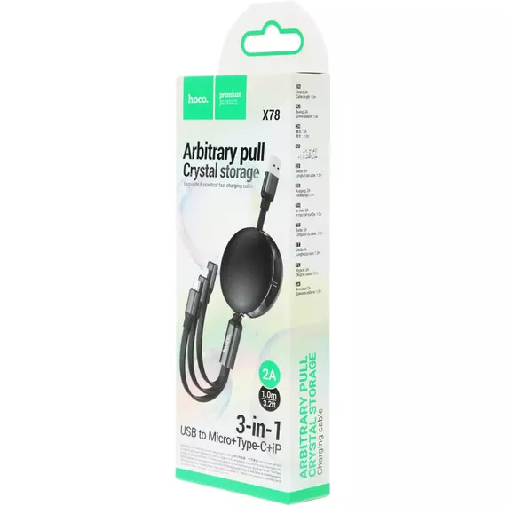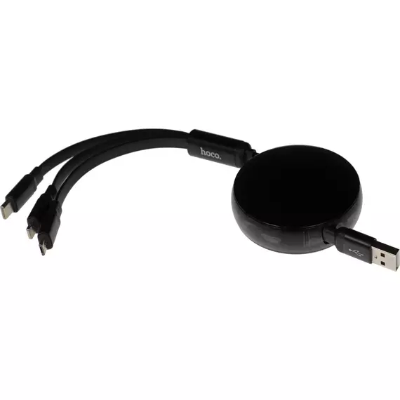Кабель Hoco X78 Easy pull storage 3-in-1 USB (m)-Lightning (m)/USB Type-C (m)/micro USB (m) 1м черный [91290]