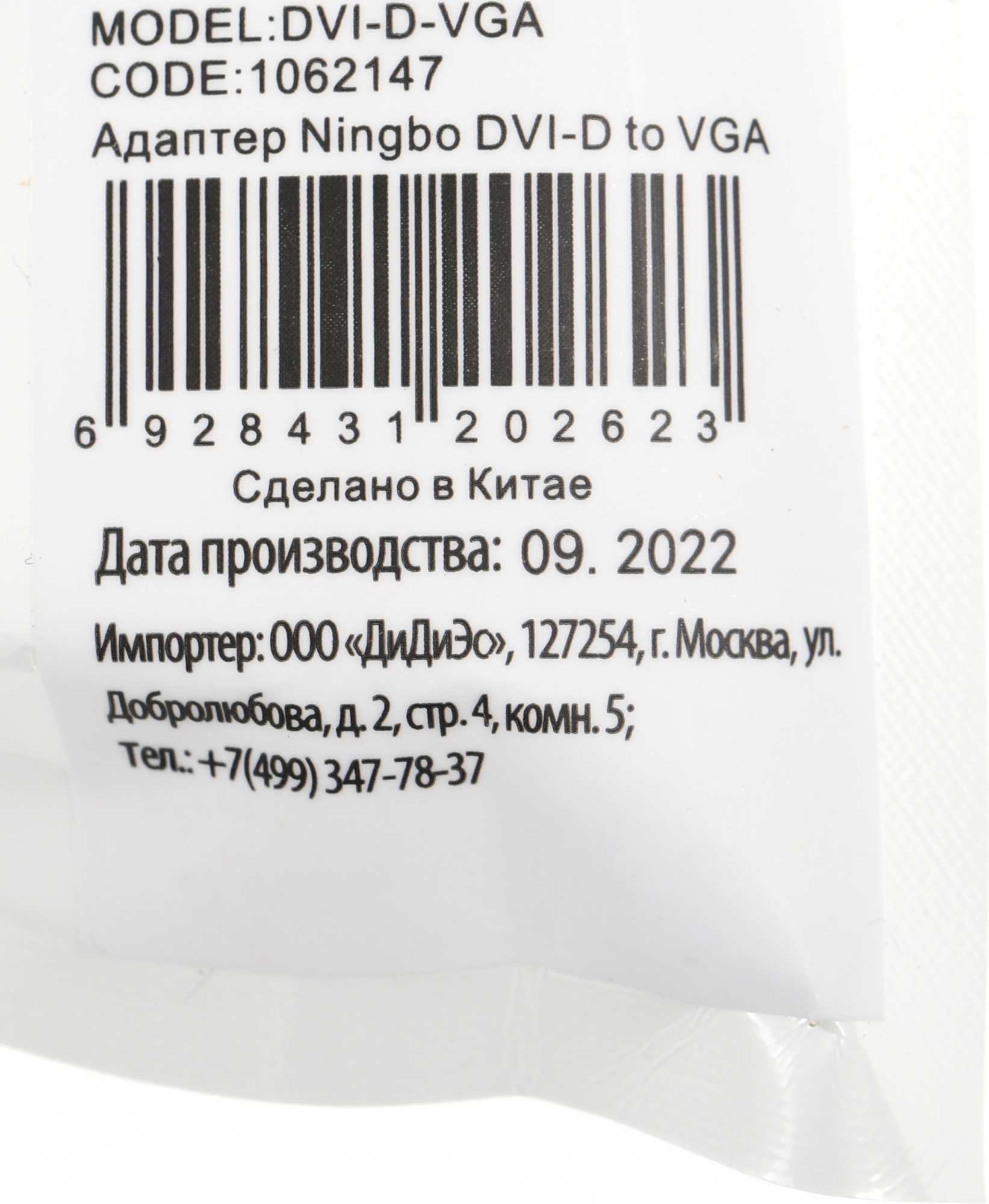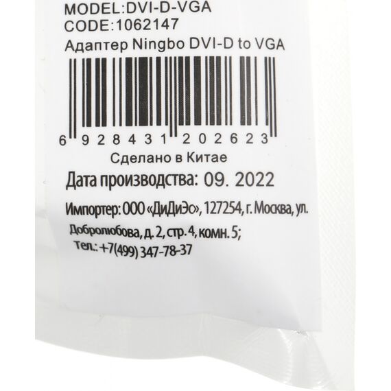 Наличие товара Ningbo DVI-D (m) VGA (f) 0.23м