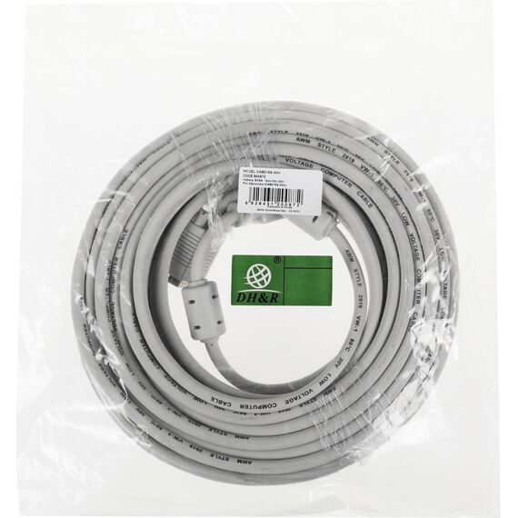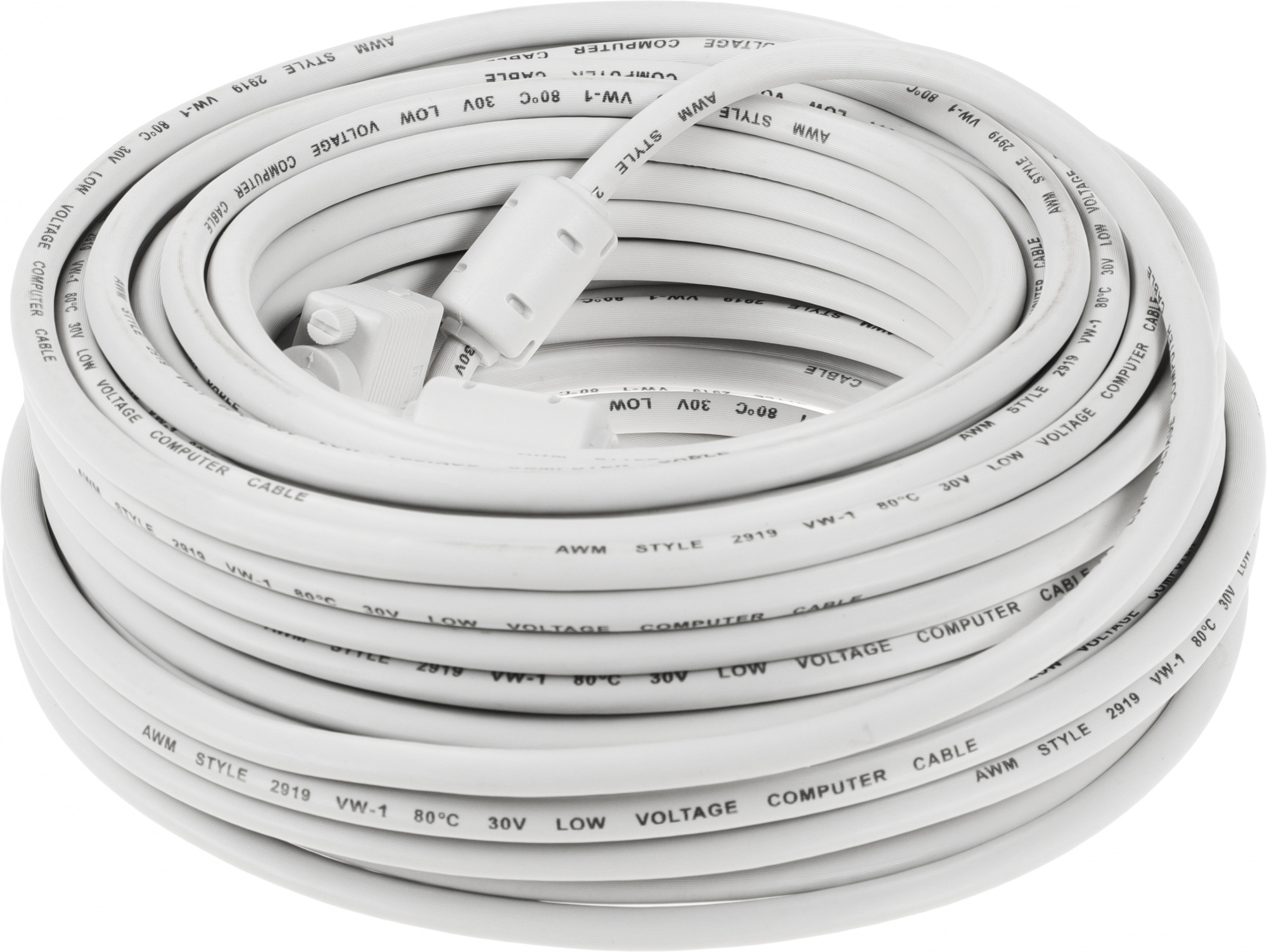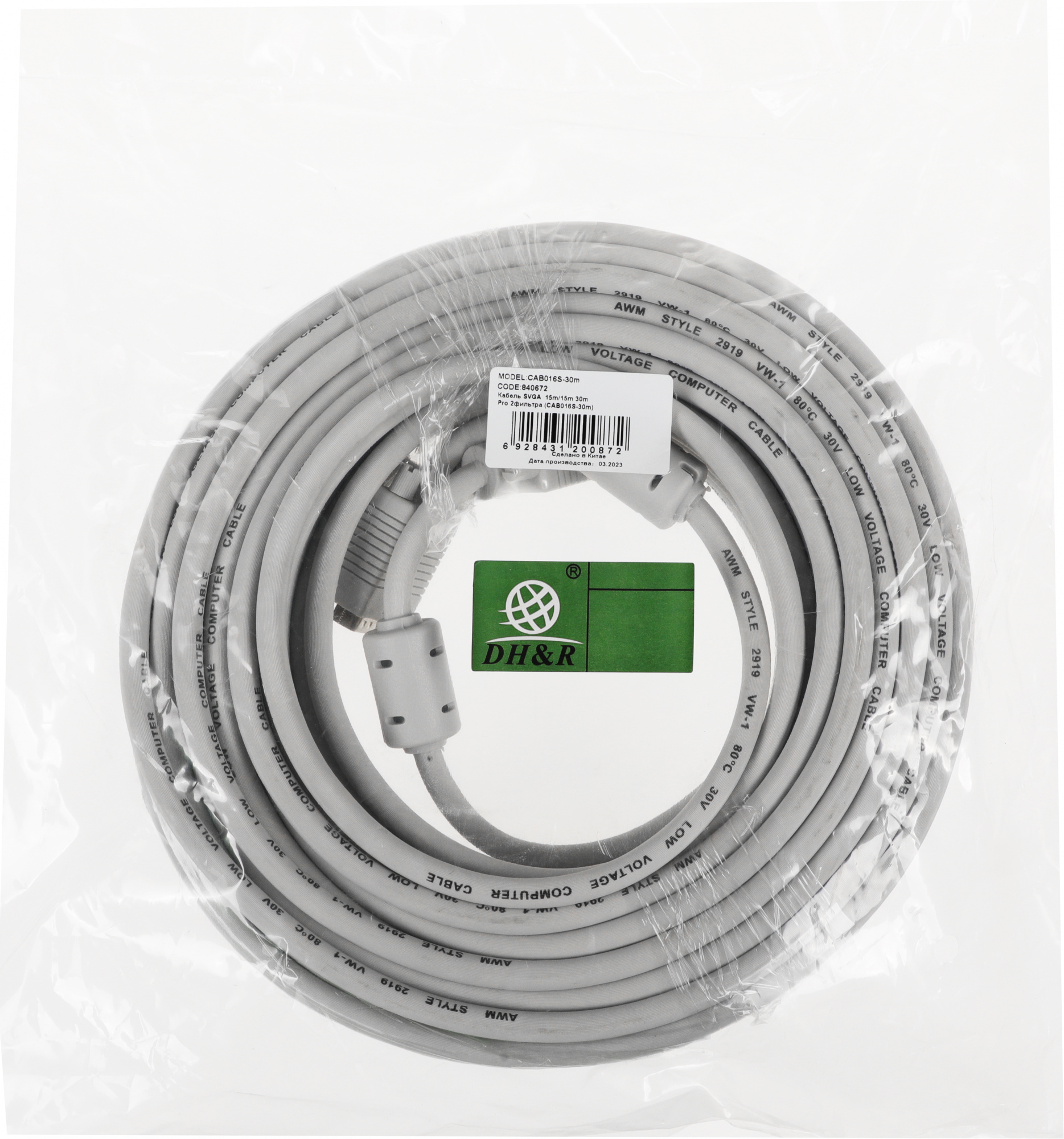 VGA кабель длиной 30 метров, дающий огромные возможности по размещению оборудования в больших помещениях. Встроенные ферритовые кольца блокируют помехи искажающие идущий по проводу сигнал, таким образом повышая его качество.