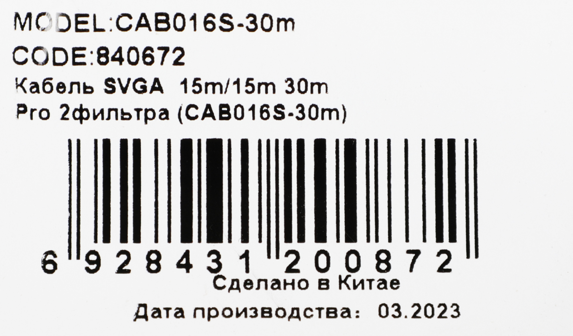 Наличие товара Ningbo VGA (m) VGA (m) 30м [CAB016S]