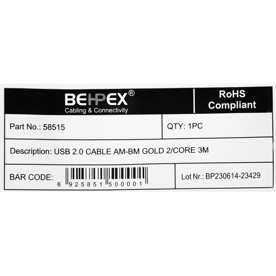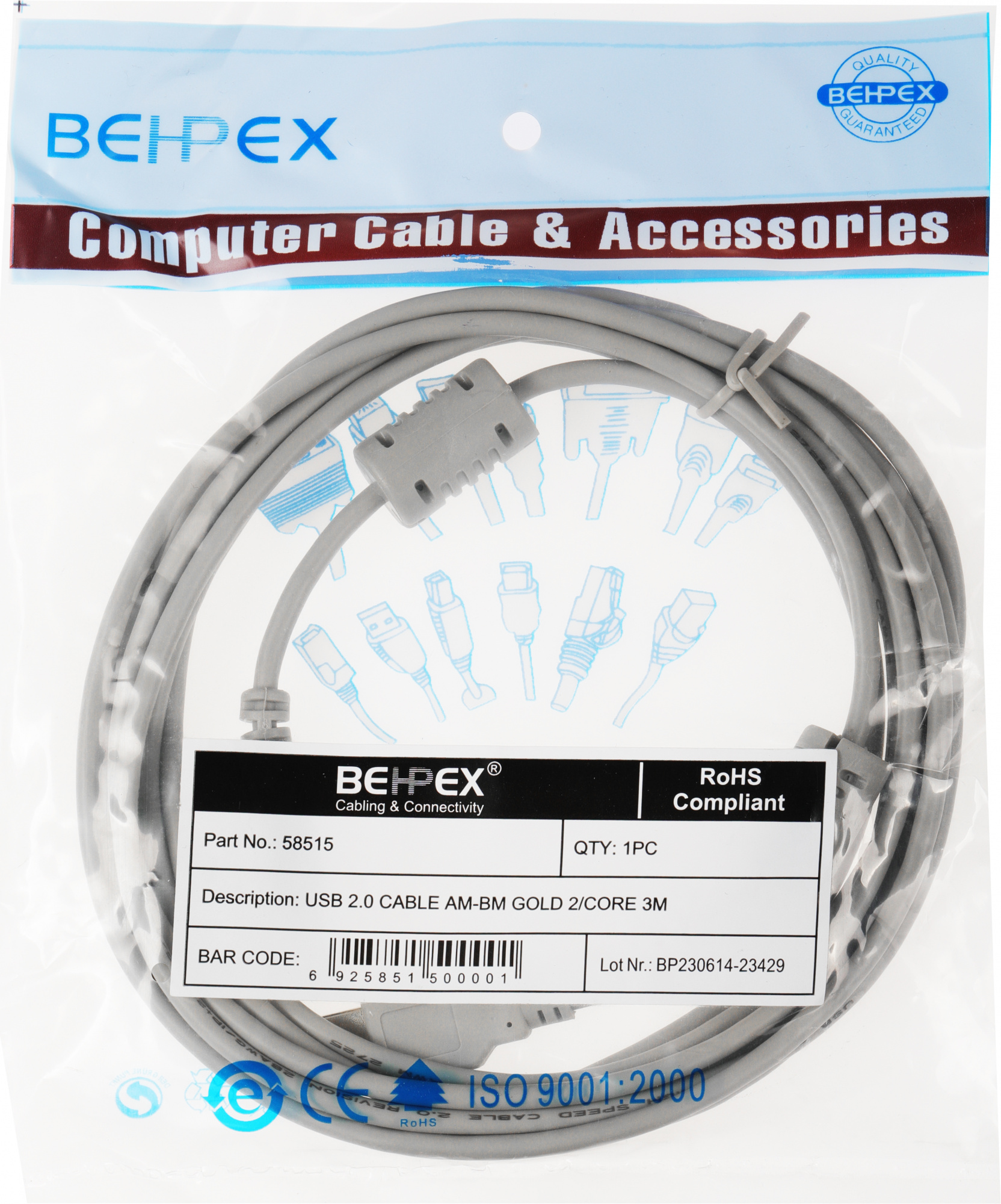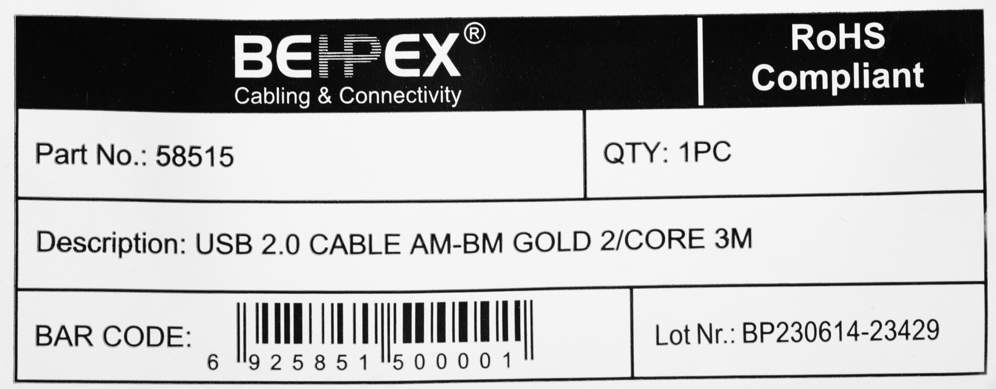Кабель для подключения оргтехники, источников бесперебойного питания и прочих устройств с портом USB type-B к персональным компьютерам и ноутбукам. Длина 3 метра.
