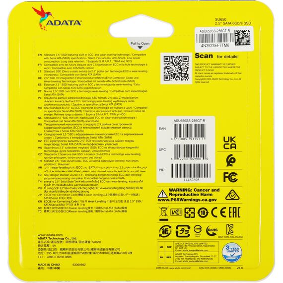 Накопитель SSD AData 256GB Ultimate SU650 SATA-III 2.5" [ASU650SS-256GT-R]