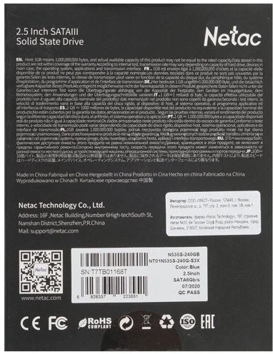 - Описание: Твердотельный накопитель Netac SSD N535S 2.5 SATAIII 240GB