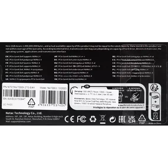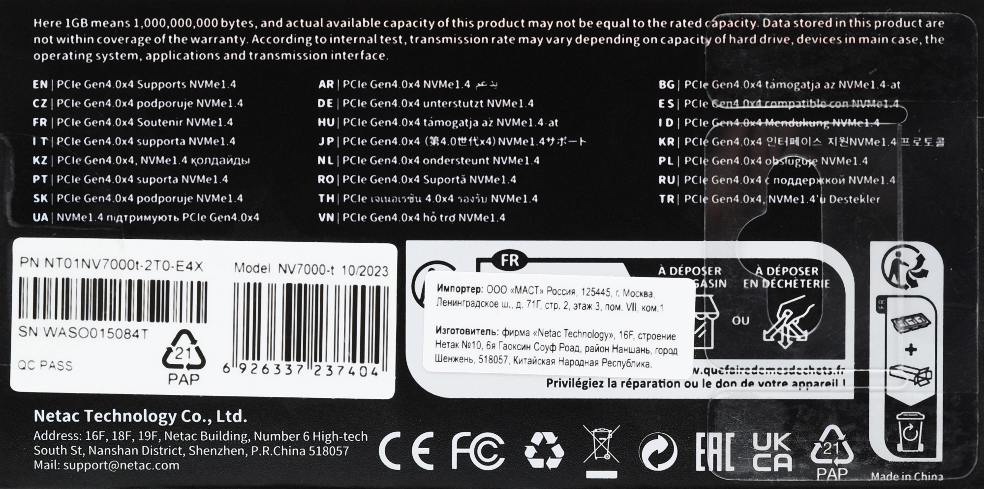 Наличие товара Netac 2Tb NV7000-t [NT01NV7000T-2T0-E4X]